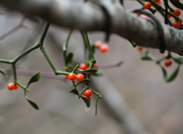 겨우살이는 반기생성 식물로, 기생하는 나무에서 영양분과 물을 흡수하며 살아갑니다.