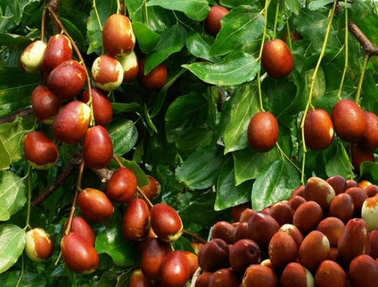 대추는 붉은색의 작은 열매로, 건조하면 껍질이 쭈글쭈글해지고, 달콤한 맛이 특징입니다.