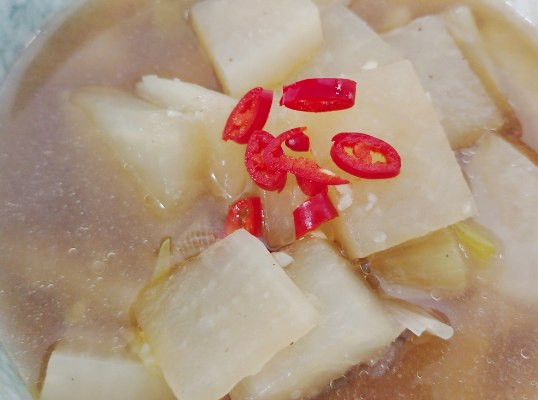 - 무우를 깍둑썰기하거나 조각내어 스프나 스튜에 넣어 끓입니다. 무우는 부드러운 질감과 고유의 맛으로 요리에 풍부한 맛을 제공합니다.