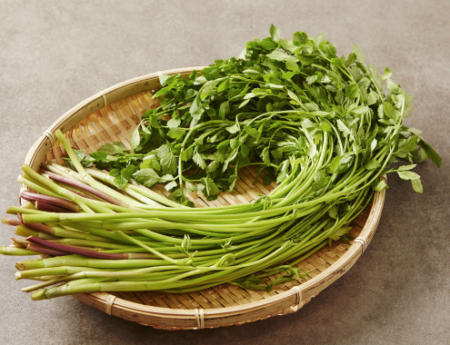 미나리는 비타민 A, C, K를 비롯한 비타민군과 철분, 칼륨, 칼슘 같은 미네랄이 풍부합니다.