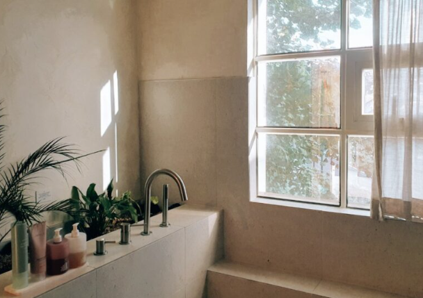 샤워 공간을 창문 근처에 배치하면 자연광이 충분히 들어와 쾌적한 분위기를 만듭니다.