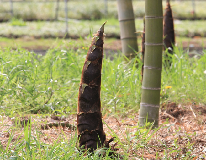 대나무 종류에 따라 죽순의 형태와 크기가 다양하며, 일반적으로 길고 원추형을 띠고 있습니다.