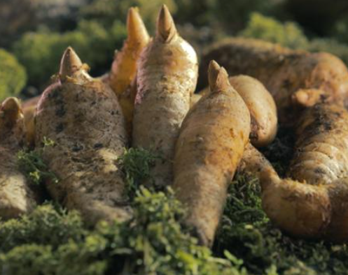 - 천마는 뿌리 부분이 굵고 길쭉한 모양을 가지고 있으며, 줄기는 땅 속에 숨어 있어 잘 드러나지 않습니다.