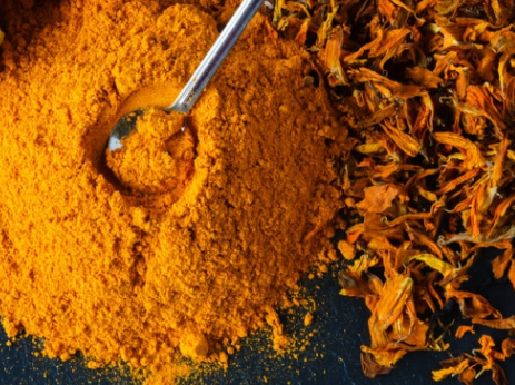 커큐민은 강황의 주성분으로, 음식의 향신료, 특히 카레의 주된 성분으로 잘 알려져 있으며, 그 독특한 색과 풍미를 제공합니다.